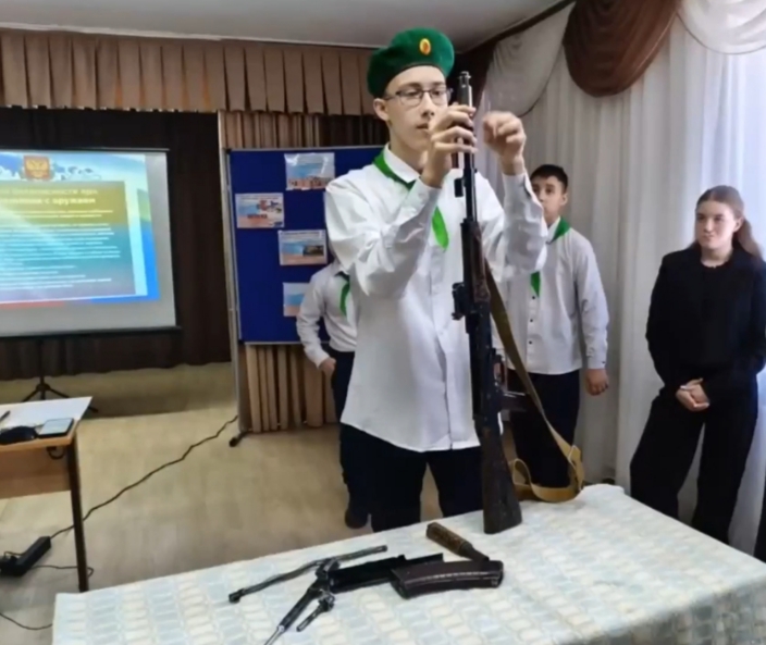 18 февраля, в рамках месячника оборонно-массовой и военно-патриотической работы, члены отряда ЮДП "Дети границы" Гринь София и Притула Роман провели мероприятие, посвященное легендарному автомату Калашникова. Ребята рассказали о его создателе - Михаиле Тимофеевиче Калашникове, продемонстрировали устройство АК и объяснили его значение для армии. Под руководством уполномоченного отделения (погз) в с. Константиновка состоялось первенство по неполной разборке и сборке АК среди обучающихся ЦВР.